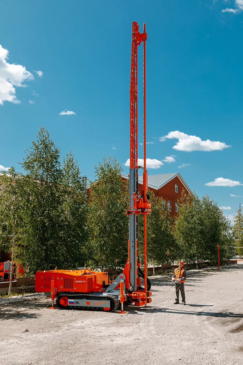 Dikey sondaj için Figaro 1000V sondaj kulesi. Jet toprak çimentolama teknolojisini kullanarak kuyu açmak ve kazık kurmak için tasarlanmıştır.