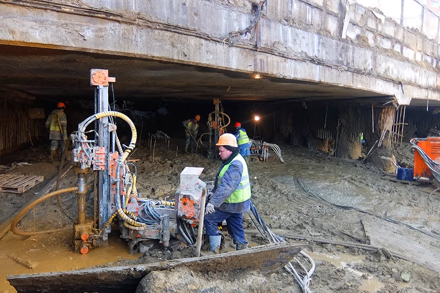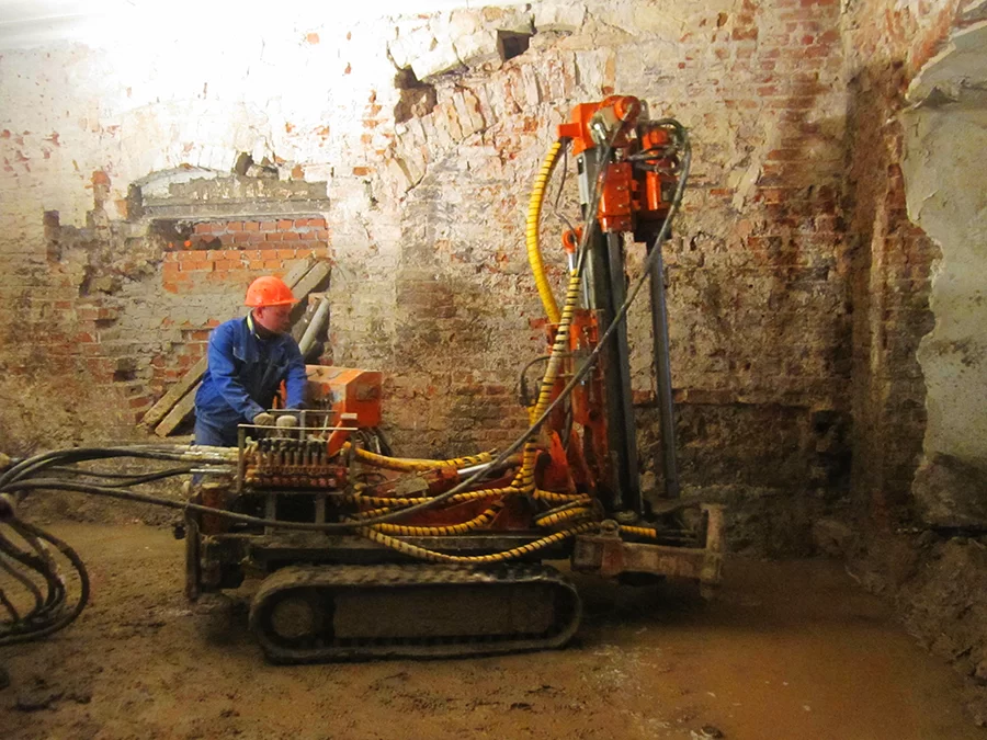 Ayrı bir hidrolik üniteye sahip mobil sondaj makinesi. Sıkışık koşullarda çalışmak için kullanılabilir.