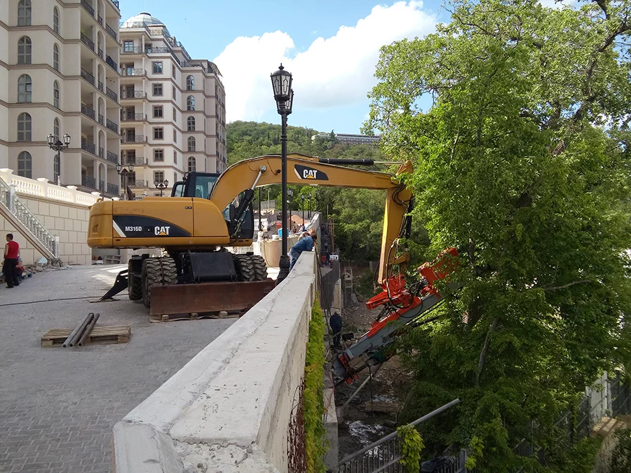 Delici taşıyıcı, 18 tonun üzerindeki hidrolik ekskavatörlerle çalışacak şekilde tasarlanmıştır. Taşıyıcıda direğin dikey ve yatay konumlandırılması için eğimli bir silindir bulunur.