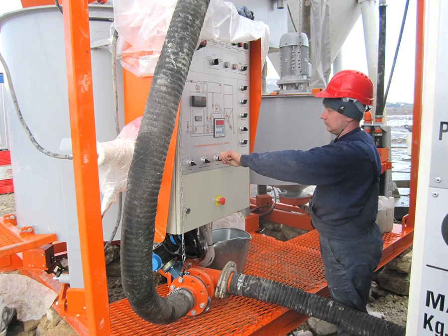 Otomatik modda çimento ve bentonit çözeltileri hazırlamak için karıştırma istasyonu Vikhr20 .