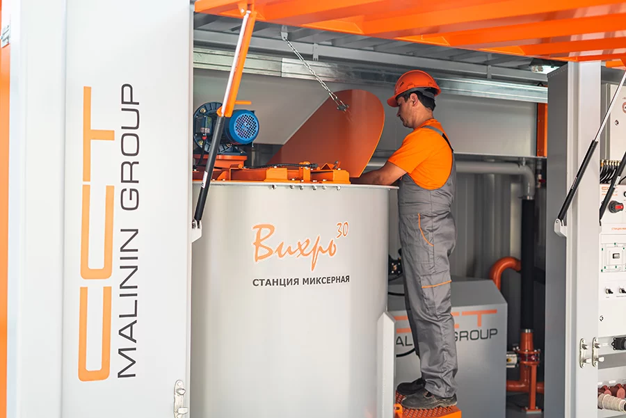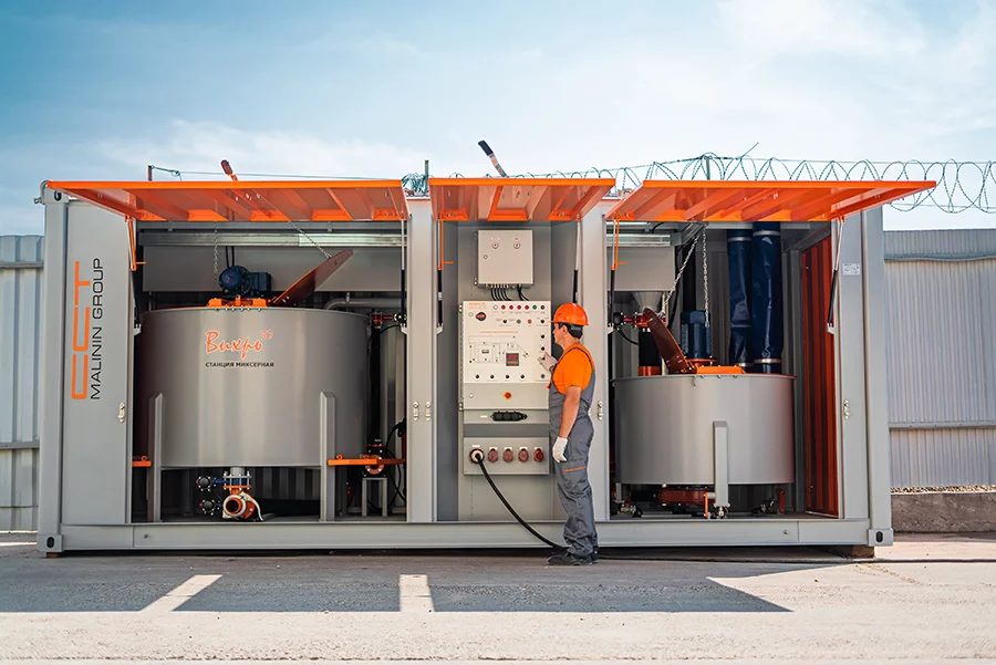 Çimento ve bentonit çözeltilerinin otomatik modda sürekli olarak hazırlanması için yüksek performanslı karıştırma istasyonu Vikhr30 .